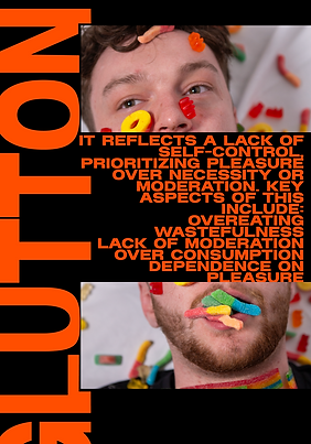 For this project, I wanted to combine both my photography and graphic design skills. I decided to create 7 different magazines representing the 7 deadly sins. The process involved finding models, taking all photos included in the magazines, and designing the magazines from scratch.